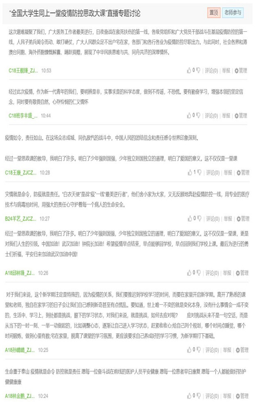 本次疫情防控思政大课引发了我校师生们的热议,师生们纷纷通过各种途径发表自己的看法。