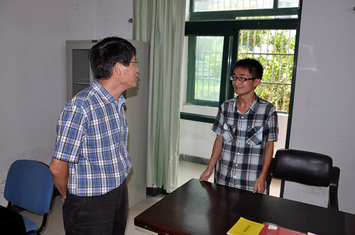 蒋书记与值班辅导员进行交谈