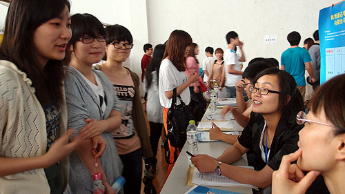 这次招聘会共有沃尔玛(浙江)百货有限公司,海外海集团有限公司,浙江宏图三胞科技发展有限公司等180家企事业单位参加了会议,企业招聘岗位共595个,招聘人数达4500多人。各系在系总支和班主任老师的带领下, 3300多名2010级(大二)学生踊跃参加了应聘,其中有533人与用人单位达成了实习意向。2009级应届毕业生也有200多学生参加了招聘会,其中部分学生与企业达成了就业意向。