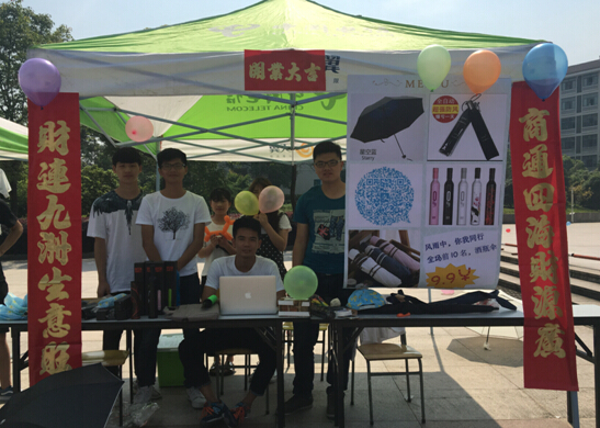 在学院图书馆前面的广场上,二十支参赛队伍搭成了两排商品街,玲琅满目的商品形成了一片独特的风景区。迎着朝阳,参赛选手们搭台陈列,开始了一天的比赛。现场销售形式多种多样,如满减活动、抽奖活动、明星同款、赠送小礼品、扫微信享优惠,比赛场面火爆热烈,参赛选手们充分发挥团队精神、合理分工、采用了各种促销手段拉动销售额,来创出佳绩。经过一天的促销比赛,最后产生一等奖1组,二等奖2组,三等奖3组。