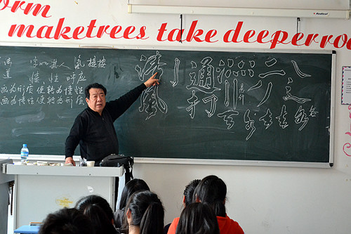 葛德瑞老师告诉我们书法就是书写的方法,指出字如其人,我们在写字时要注重注入性格和感情。随后,葛老师通过唐代书法家孙过庭的一首诗指出两点:一是对书法要活到老,学到老;二是楷体的八种基本笔法,并提醒我们在写字时要善于去想,要考虑到墨的不同性,告诫我们临帖时要用心、用气、用神,同时要注重布局。